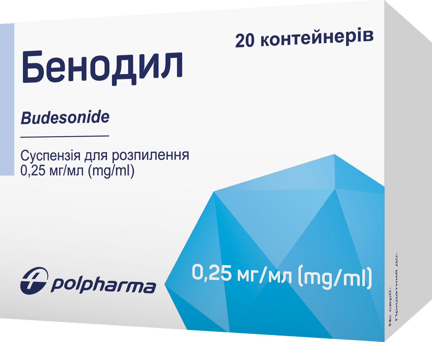 Бенодил містить потужний негалогенізований кортикостероїд – будесонід, призначений для лікування бронхіальної астми у пацієнтів, для яких застосування інгаляторів з розпиленням лікарських речовин стиснутим повітрям або у вигляді лікарської форми сухого порошку є неефективним або недоцільним.