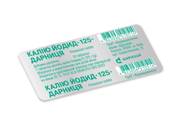 Калію йодид-125-Дарниця таблетки по 125 мг, 10 шт.